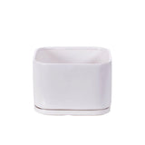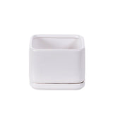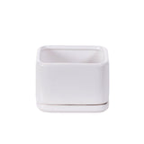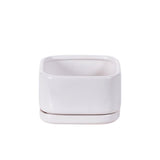 Square matte white pottery w/detached saucer and drain hole.